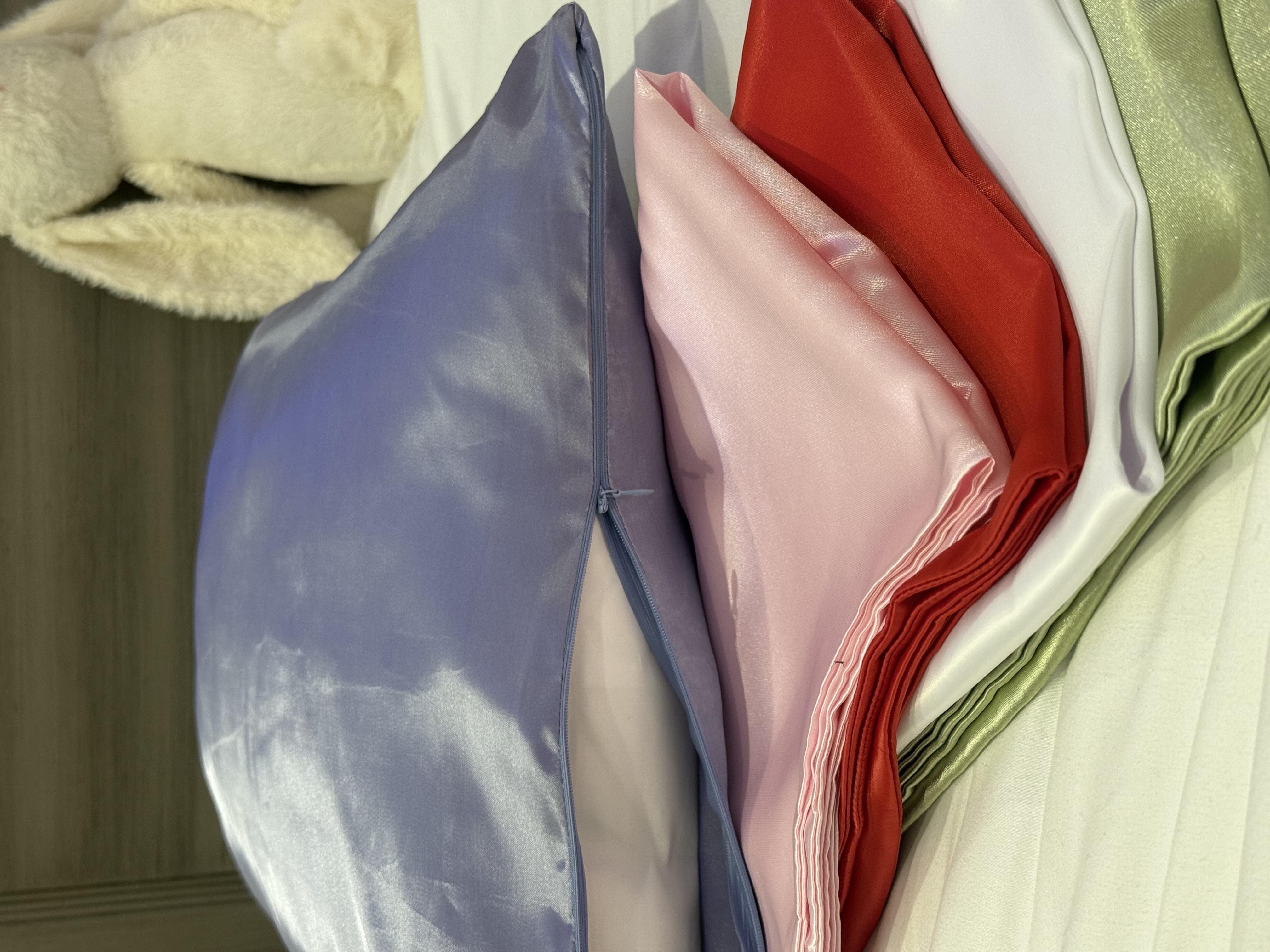 روبالشی ساتن زیپ دار. سایز روبالشی ها استاندارد هستند و بخاطر جنس ساتن از موخوره و وزی موها جلوگیری کرده و باعث عدم شکنندگی و کشش موهای شما میشوند.
